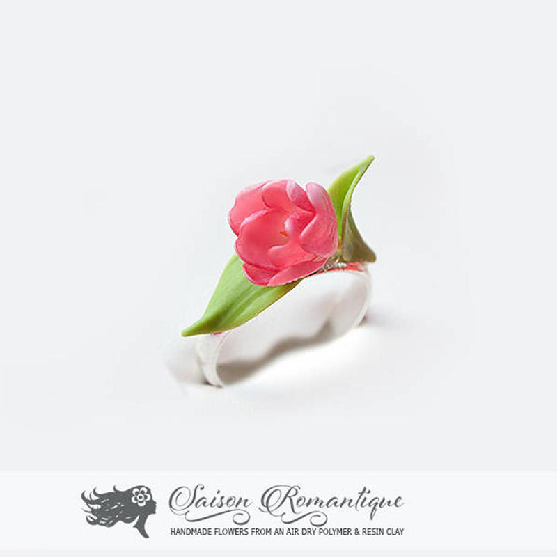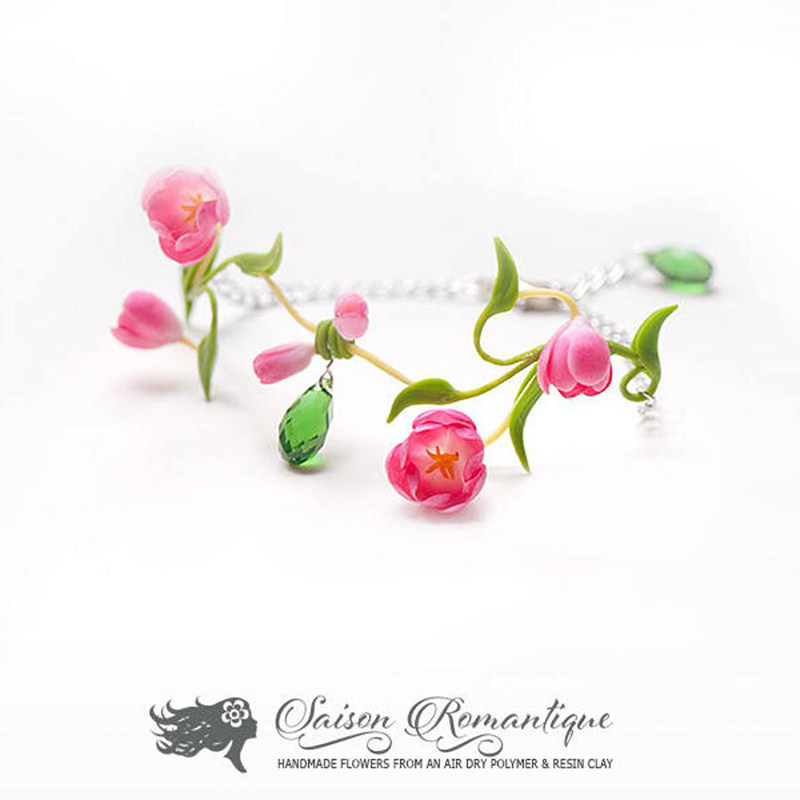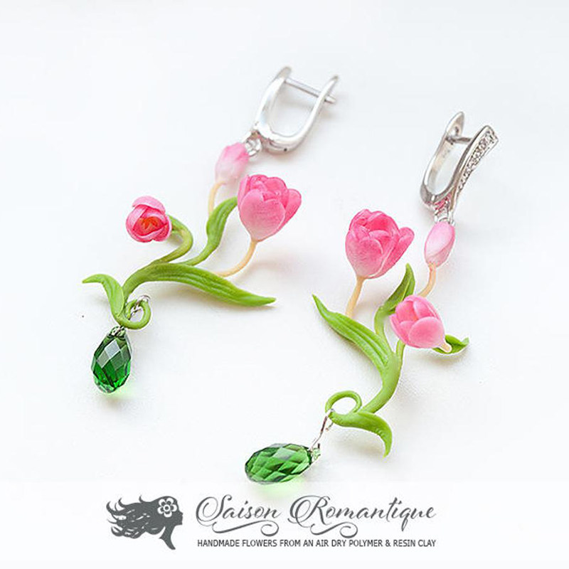 Russian Antonina original handmade ornaments -- flower wedding -- tulip pendant earrings in hand