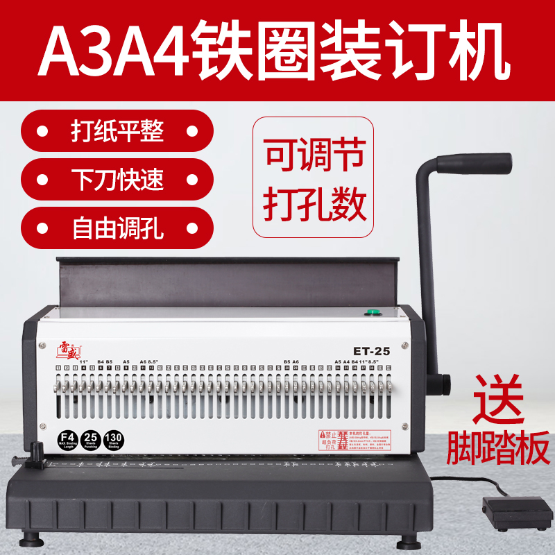Binding machine electric heavy duty thick layer double coil hole punch machine a3a4 double iron ring YO ring 40 square hole 23 round hole thursche ET-25R counter gray cardboard punching machine