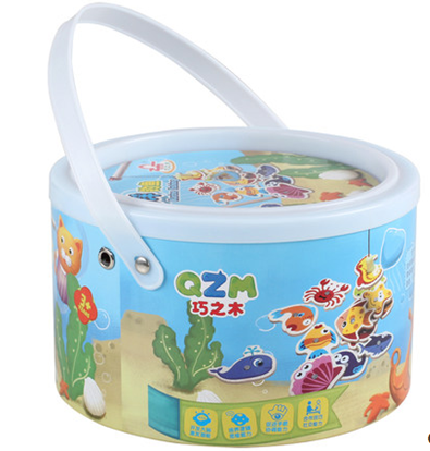 Coincidentally wood barrelled with magnetic double-pole marine fishing toy baby boy and baby boy 1-2-3-4 ½ years old