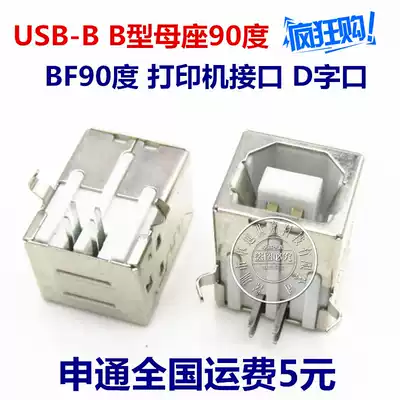 USB-B type interface female seat USB90 degree bending foot printer interface D type Square Port B female 90 degree copper socket