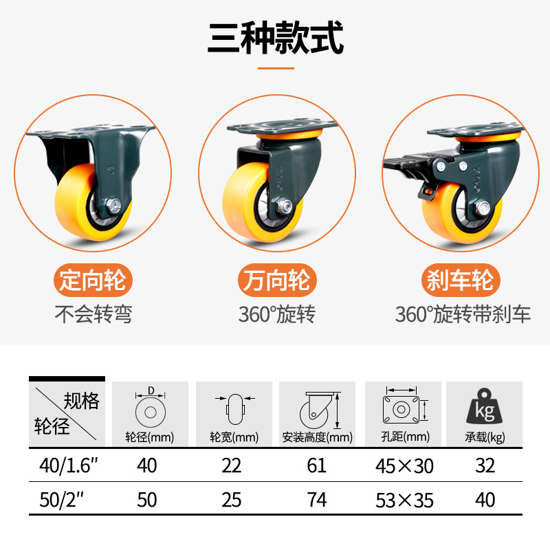 Xiangrong SUPO caster 1 6 inch 2 inch polyurethane PU with bearing brake coffee table cabinet silent cart universal wheel