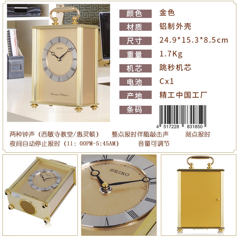 SEIKO Japan Seiko Music Newspaper Metal Clock Living Room Fashion Atmospheric quartz aluminum gold bell