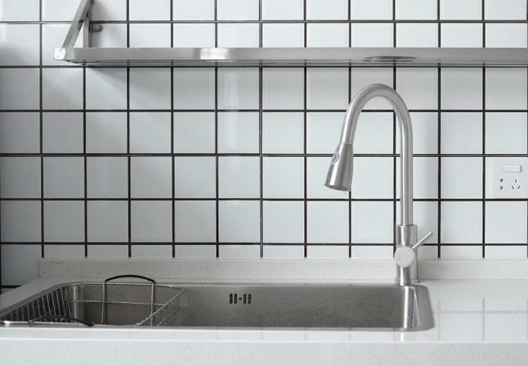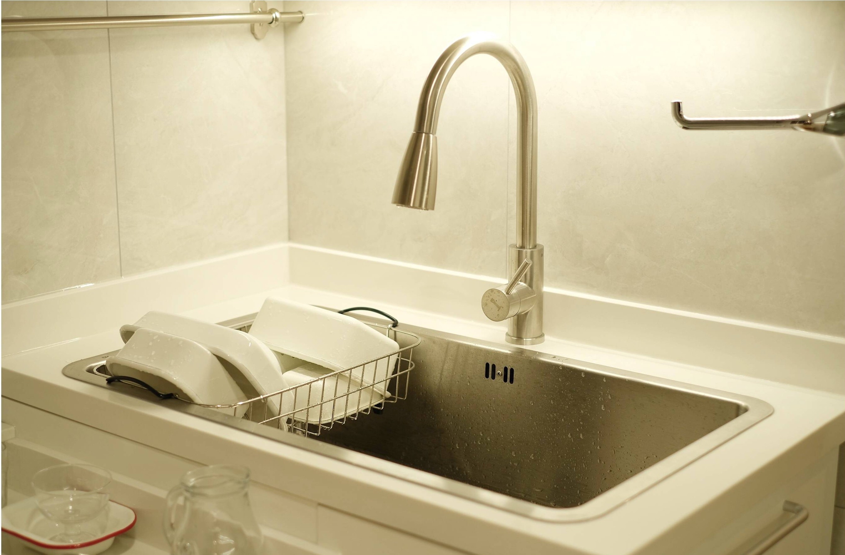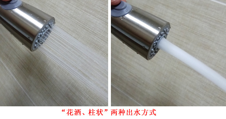 De Rui SUS304 stainless steel pull-out faucet lead-free hot and cold shower nozzle double outlet 360 degrees turn single hole
