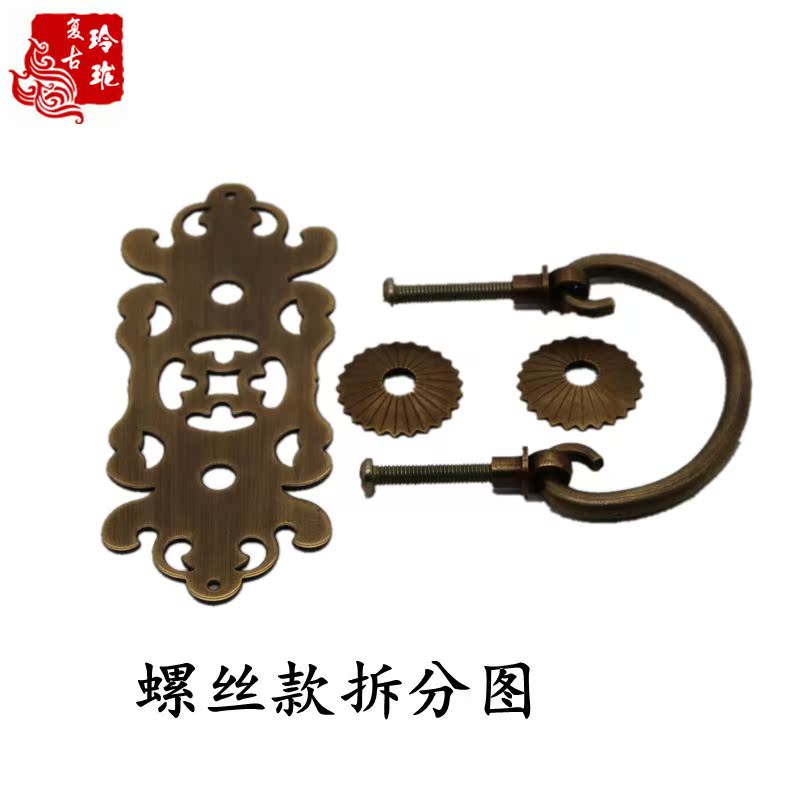 Chinese classical pure copper handle desk desk drawer hollow handle Ming and Qing furniture retro copper handle