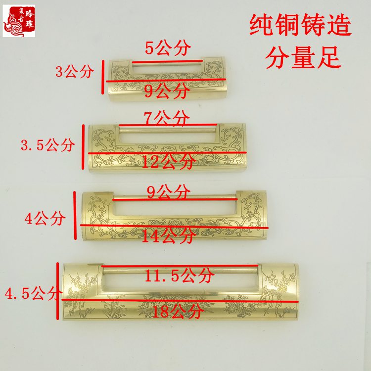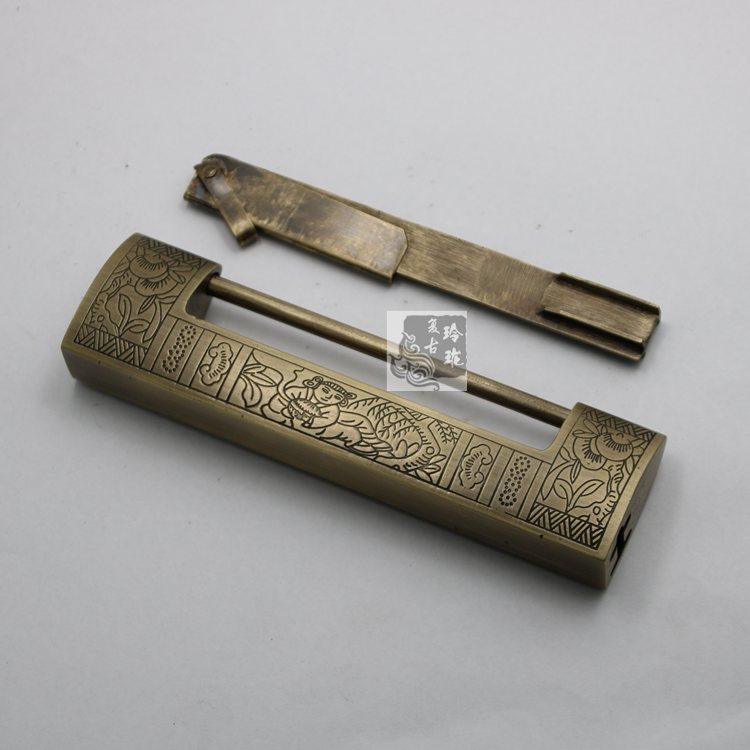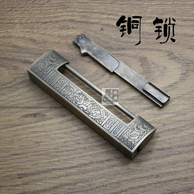 Linglong Chinese antique copper lock pure copper horizontal open padlock camphor wooden box lock bookcase copper lock old-fashioned small copper lock bolt lock