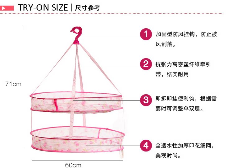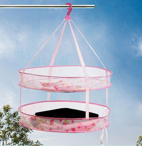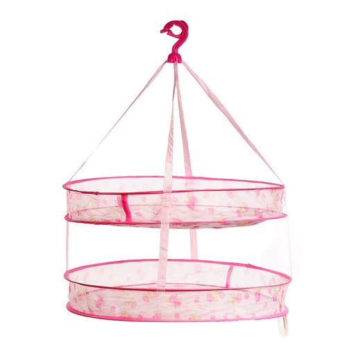 Double-layer pink printed clothes basket detachable clothes basket clothes basket drying clothes net clothes net bag