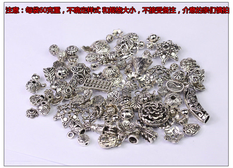 One pack of mixed Tibetan silver pendants (one pack of 60 grams of Tibetan silver beads (one pack of 60 grams of Tibetan silver tees) (one pack of 60 grams of Tibetan silver receptacles (one pack of 60 grams of Tibetan silver all randomly mixed) (6