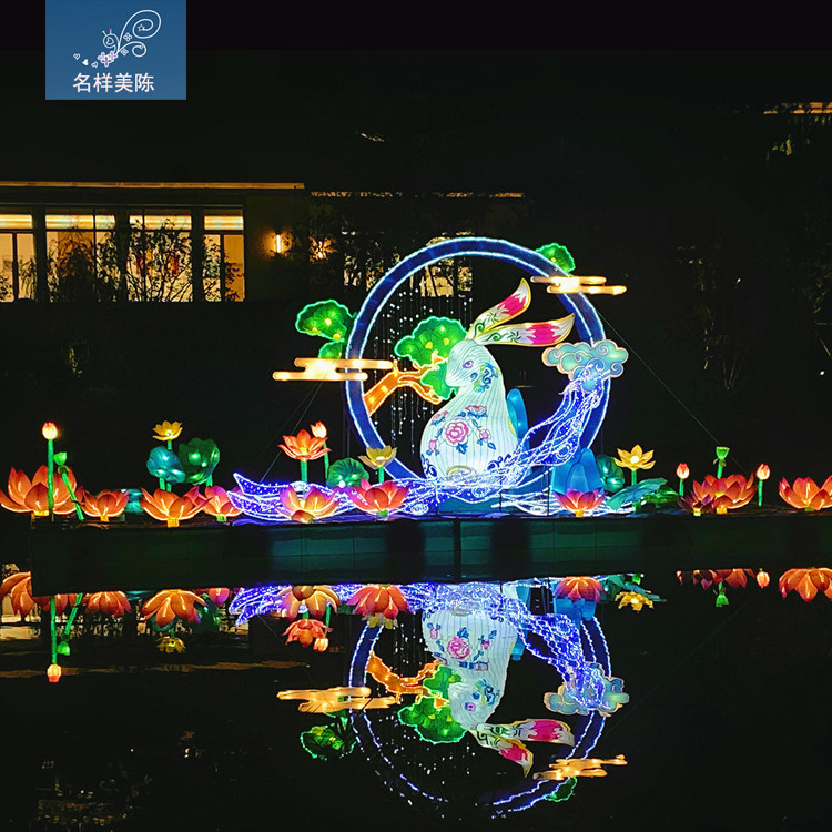 Famous Mid-Autumn Festival decoration arranged with colorful lanterns Chang'e lunar styling lanterns Lanterns Rabbit Lanterns Square Park Festival Lights