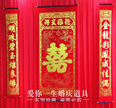 3 times 3 big red bottom mantle head 3 times 6 big red bottom mantle Head 4 times 8 big red bottom mantle head Zhongtang a pair of happy Chinese knots a pair of dragon and phoenix embroidery five sets
