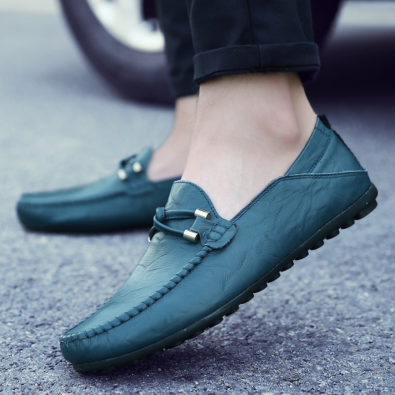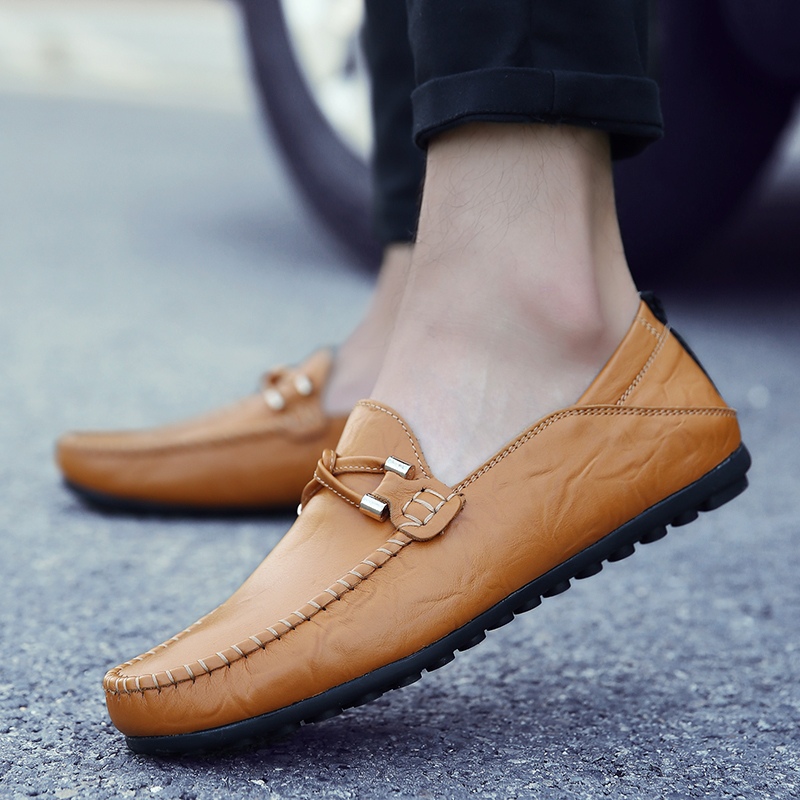 Summer breathable men's beanie shoes men's leather trend Korean version soft bottom lazy black youth summer casual leather shoes