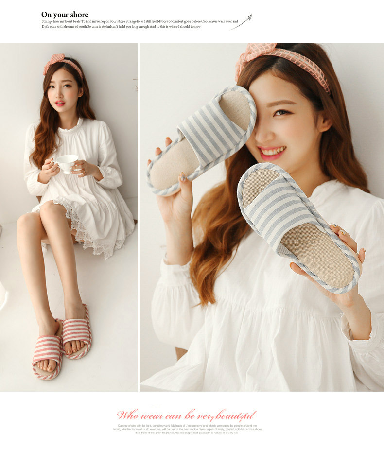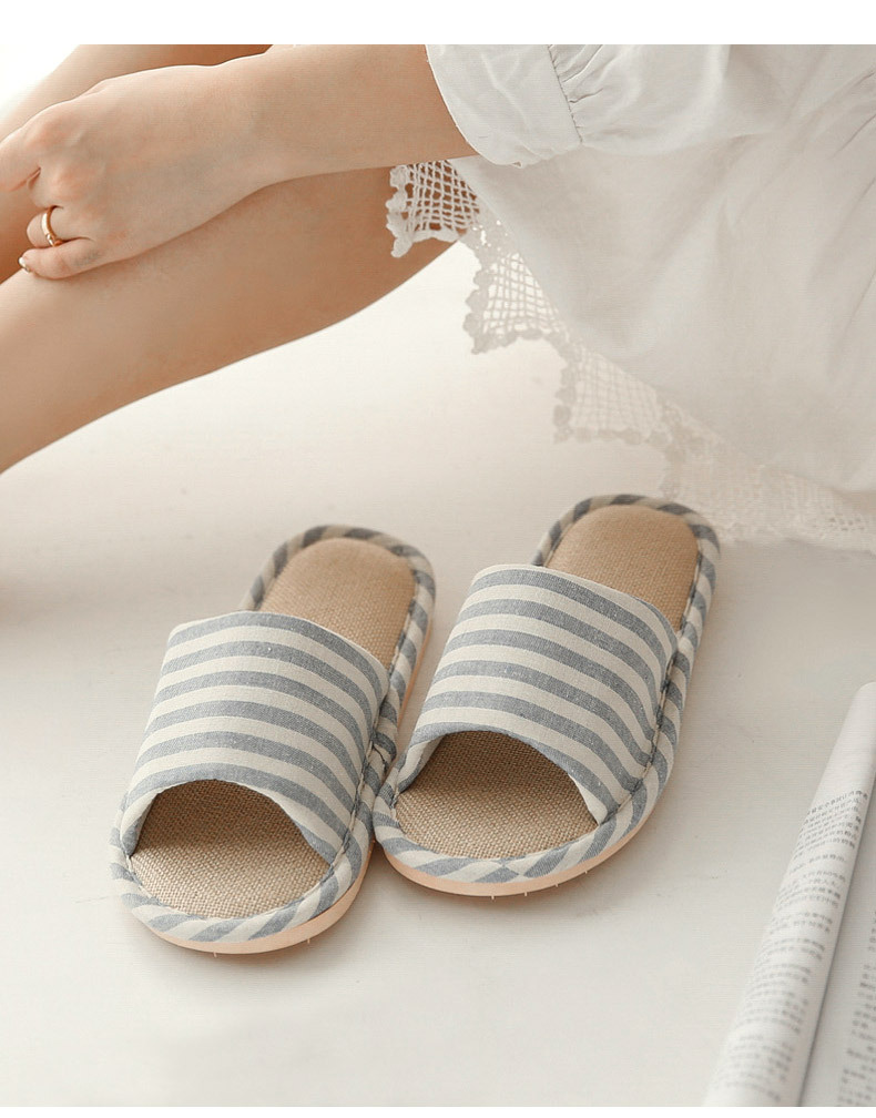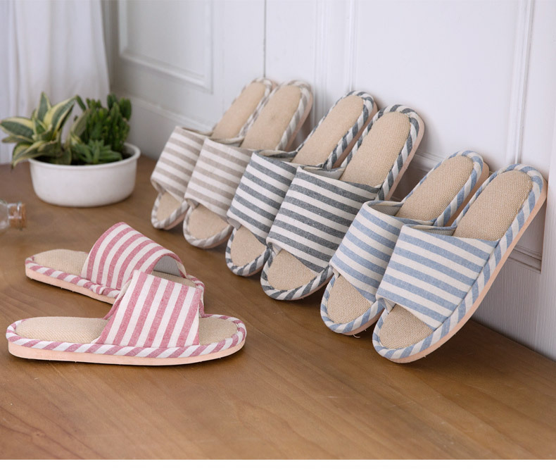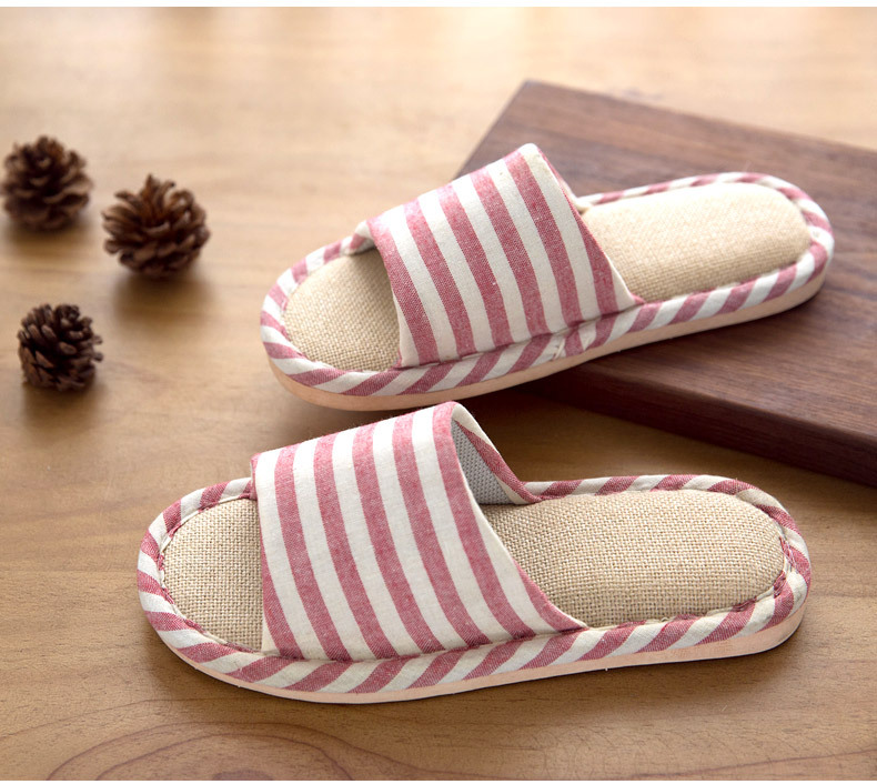 Special can not be more value-for-money Japanese-style five-color striped household linen slippers Spring and summer non-slip beef tendon bottom
