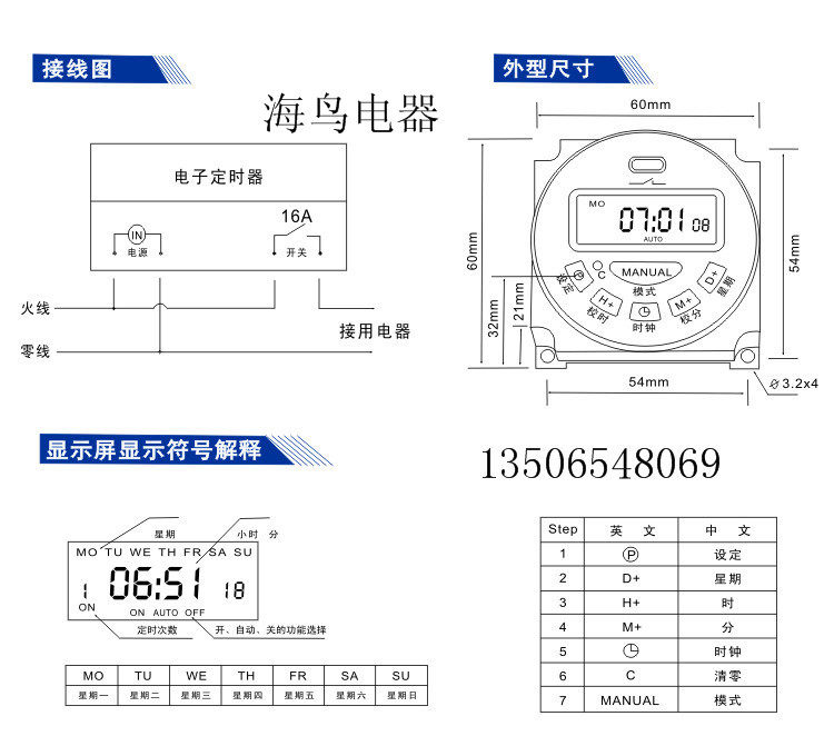 Time timer switch DC 12v controller DC12V electronic LED display L701 power timer