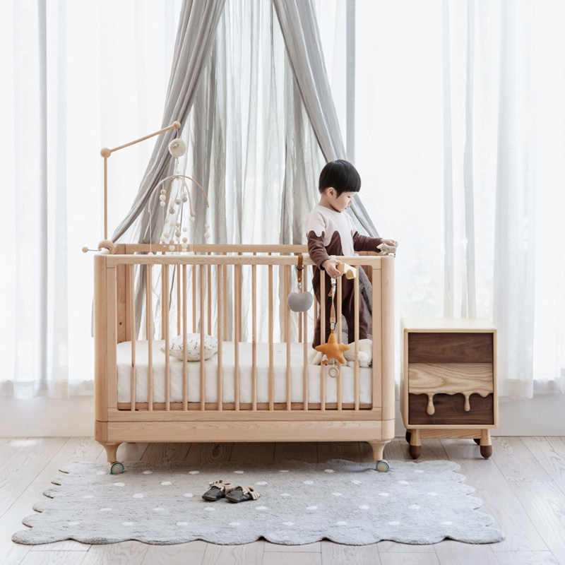 Shangxing baby bed environmental protection baby bed all solid wood imported Oshi wood wood wax oil child mother bed can be adjusted