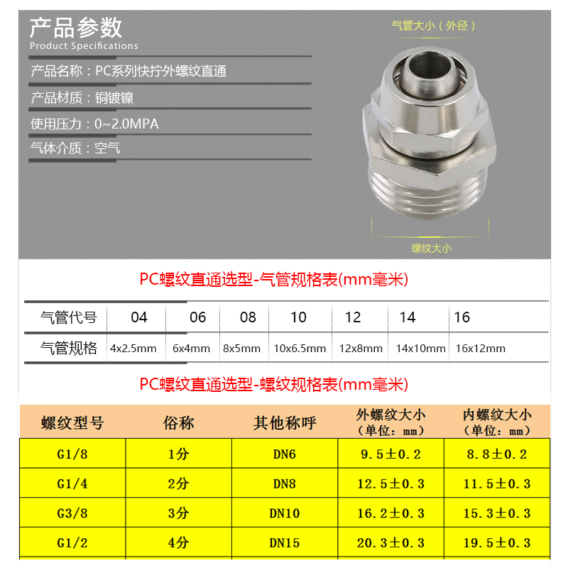 Quick screw PC4-M5 intubation 4MM threaded M5 quick screw PC4-01 intubation 4MM threaded 1 8 quick screw PC4-02 intubation 4MM threaded 1 4 quick screw PC6-M