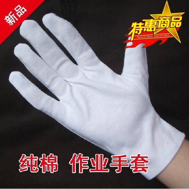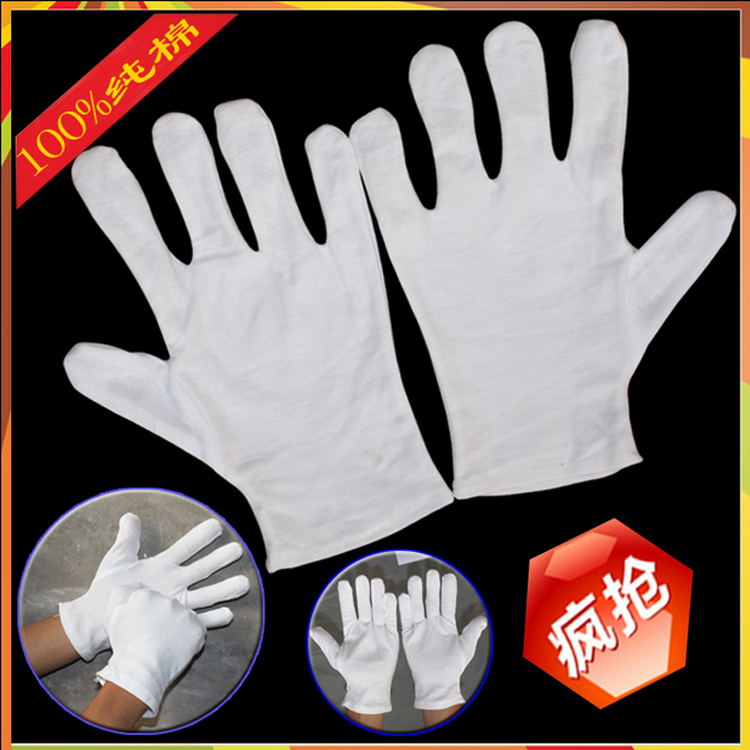 White Gloves Cotton Cloth Thin labor Pau job Wen playing sunscreen Sweat Cloth Beads Drive White Cotton Gift Instrument Gloves