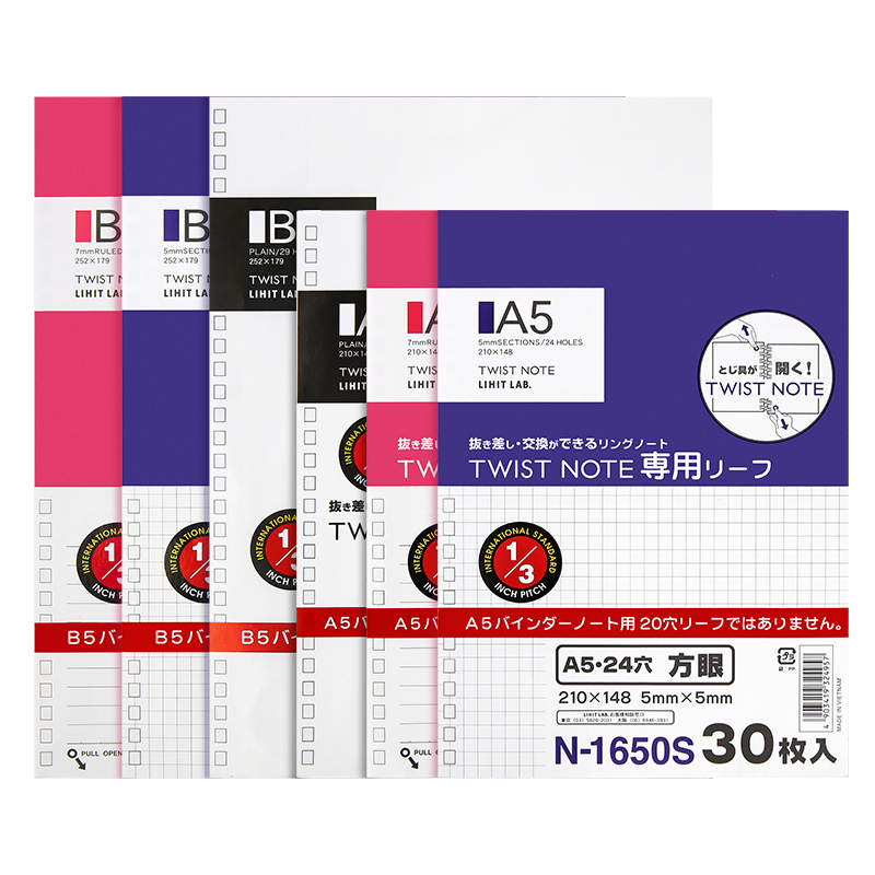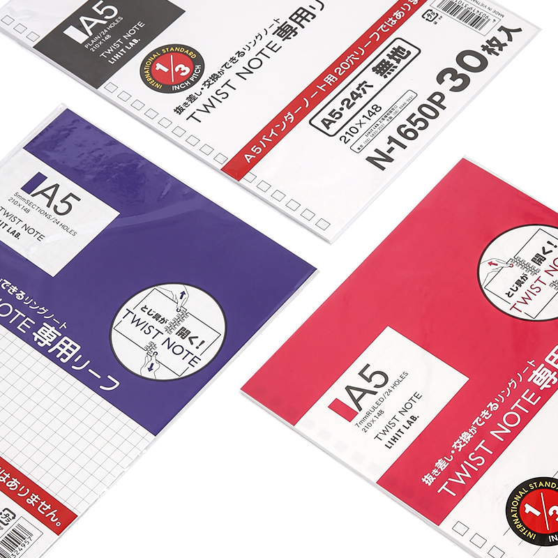 Japan Lihit Lab Xili loose-leaf notebook Core 29-hole 24-hole grid horizontal line blank replacement core loose-leaf paper A5 B5