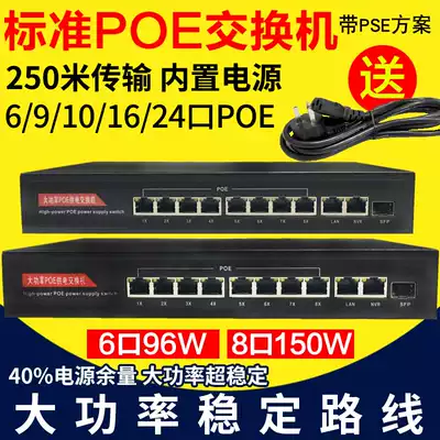 Standard POE switch 4 channels 6 ports 8 16 ports 24 ports 48 v52v surveillance network camera power Gigabit