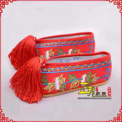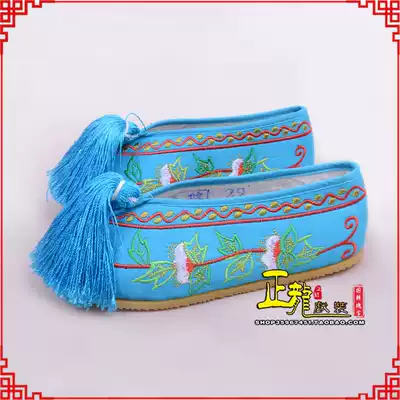 Zhenglong costume Peking opera Yue Opera opera shoes Drama Miss Huadan embroidered shoes Cow tendon bottom grass flower flat color shoes
