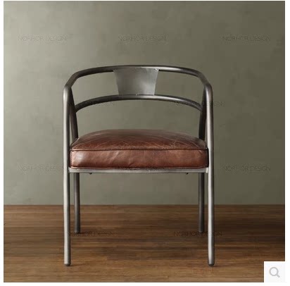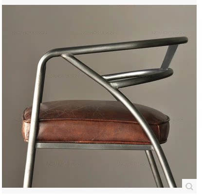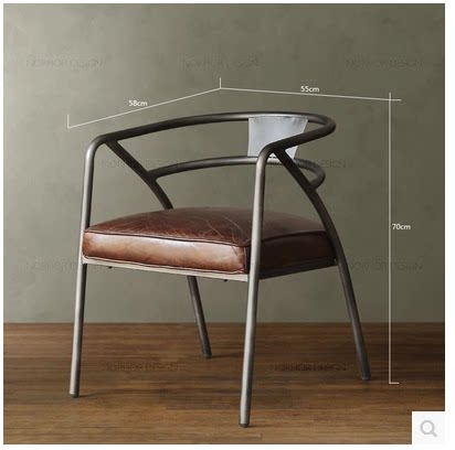 American industrial style loft retro leather wrought iron circle chair bar chair living room dining chair low back antique old