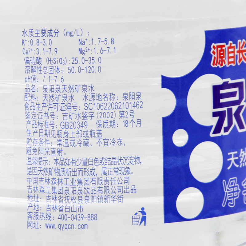 Quanyang Quan Changbai Mountain natural mineral water big bottled drinking water 2L* 6 small barreled water whole box
