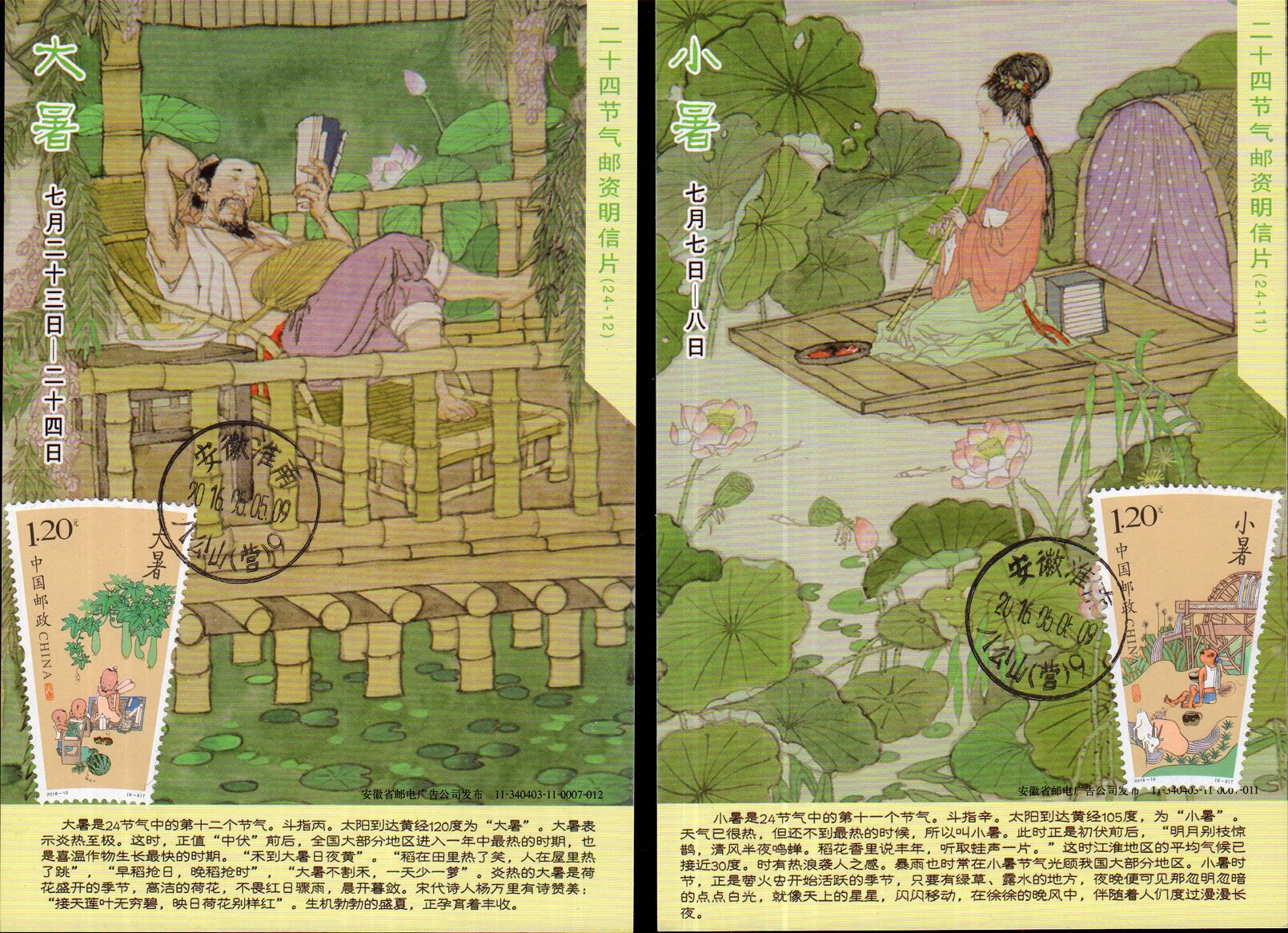 2016-10 Twenty-Four Solar Terms - Summer Stamps First-day limit postcards made on the front of the ticket, a set of six full
