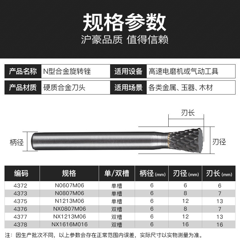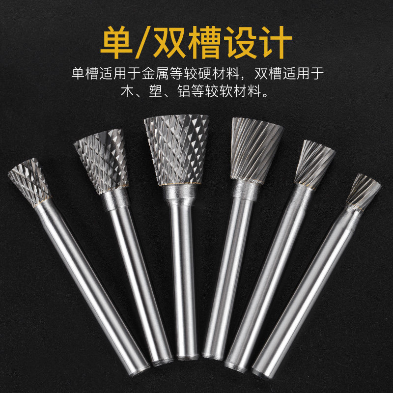 Huhao Carbide Rotary File Grinding Head Tungsten Steel Grinding Head Milling Cutter Engraving Milling Cutter N Type Inverted Cone
