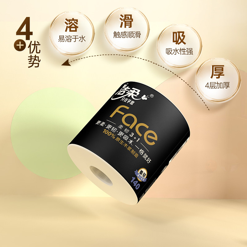 Jie Soft Roll Paper Toilet Paper Tissue Face Has a Core Home Affordable Pack 140g Roll Paper Toilet Paper 27 Roll Full Box