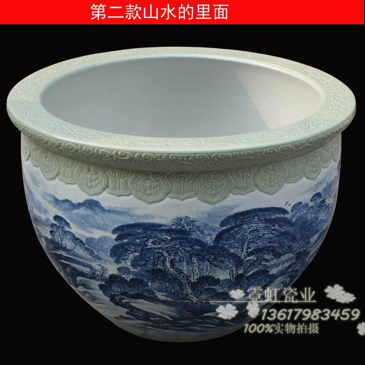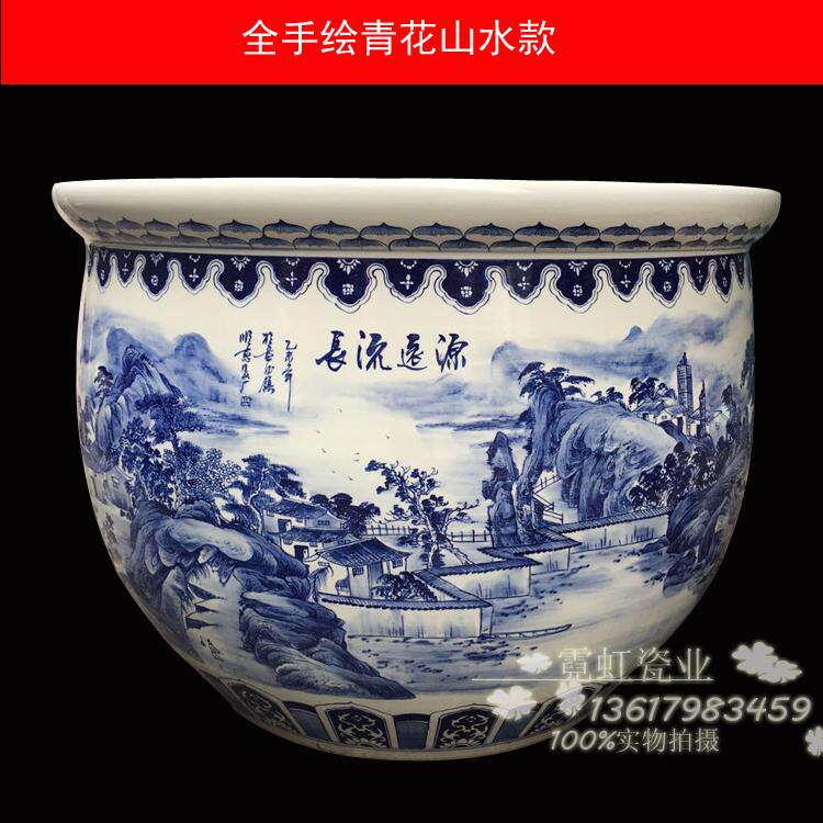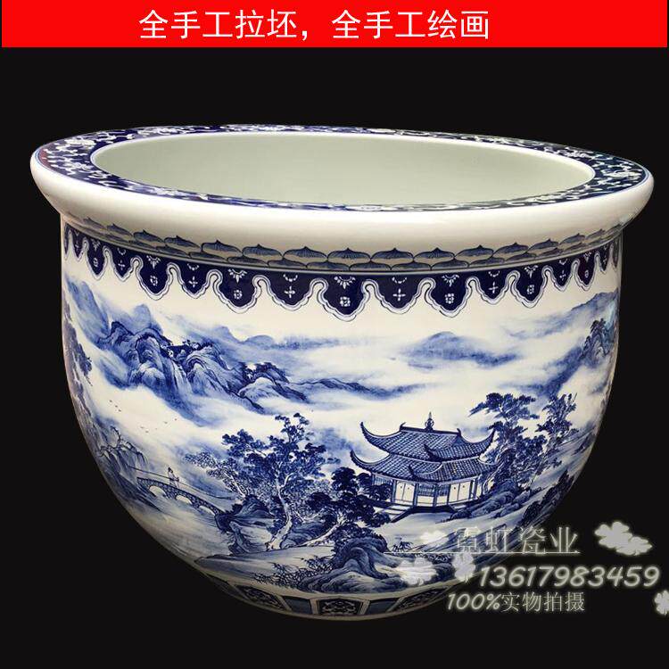 Ceramic fish tank extra-large hand-painted ceramic cylinder 1 m flower pot ceramic fish basin ceramic cylinder sleeping lotus cylinder ceramic water storage tank