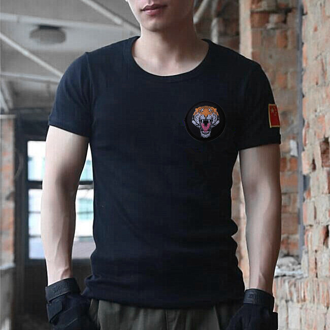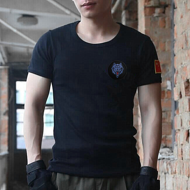 Pure cotton short sleeve black embroidery flag wolf head training T-shirt special soldier T-shirt army manicure vest