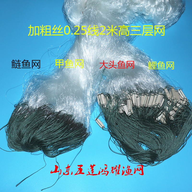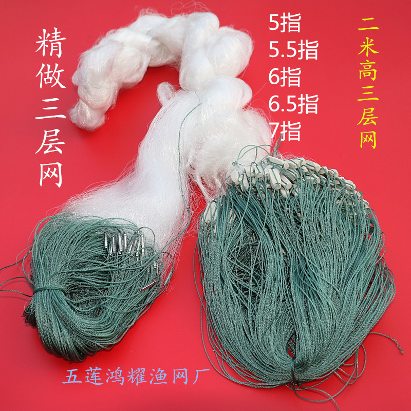Bold green silk blue silk sinking net 5 fingers 6 fingers 7 fingers 8 fingers 2 meters high three-layer fishing net silver carp carp net hanging net sticky net