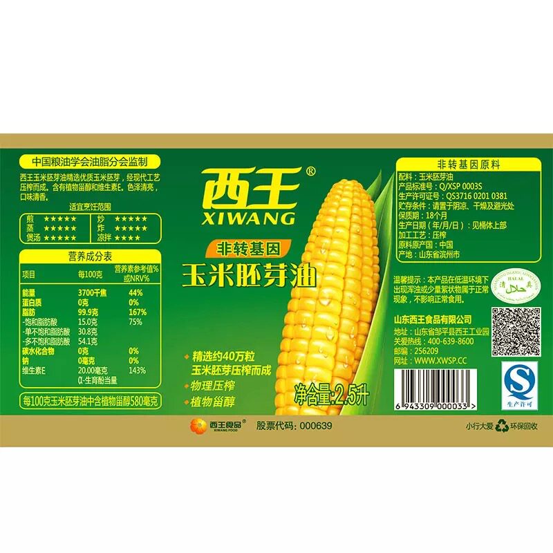 West Wang Corn Oil 2 5L*6 barrels full pack nitrogen preservation corn germ oil non - transformation healthy oil