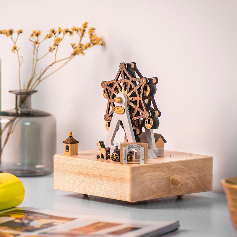 jeancard music box Amusement Park Ferris Wheel Wooden music box Send girls best friend birthday gift Valentine's Day