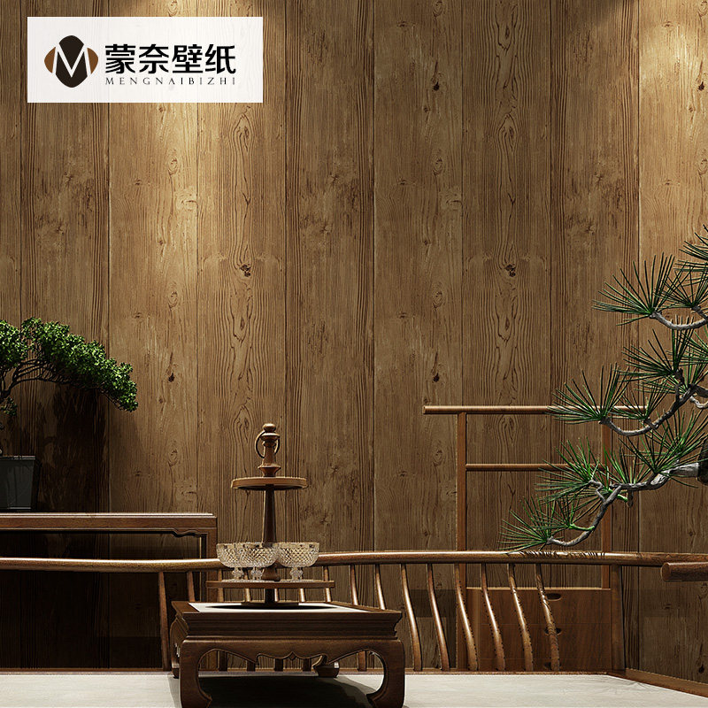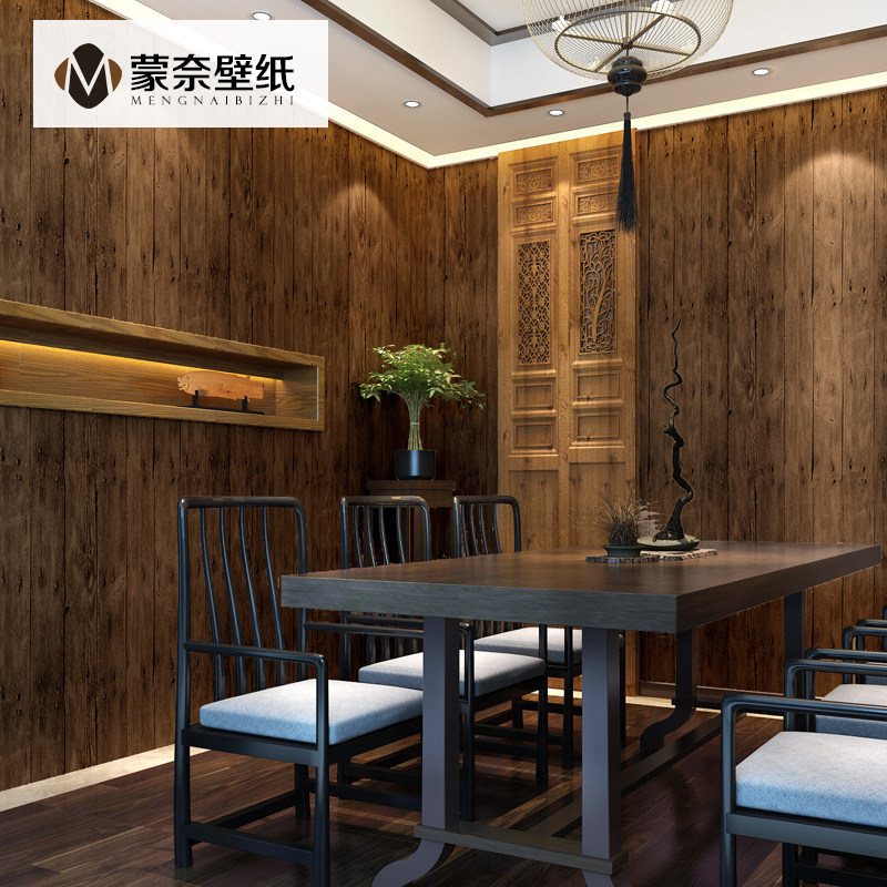 Vintage 3d three-dimensional Chinese antique wood grain wallpaper Imitation wood restaurant clothing store Hotel wood background wallpaper logs