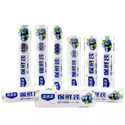 Qingqingmei thickened fresh-keeping bag thickening type point-breaking flat-mouth PE refrigerator food fresh-keeping bag 5 rolls