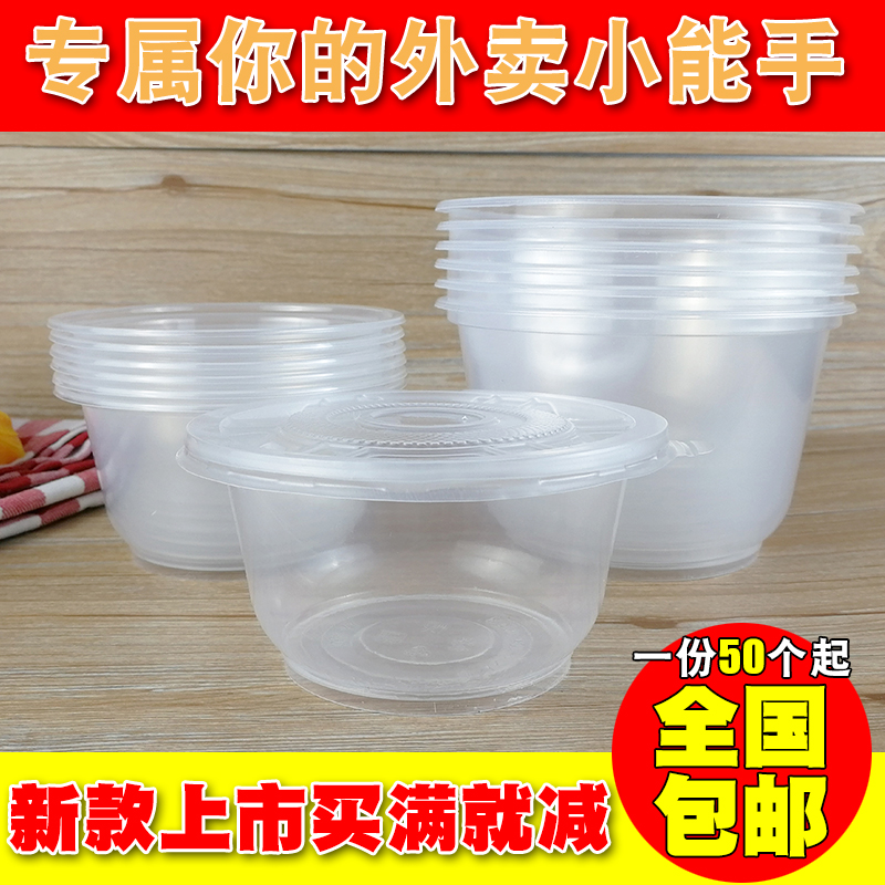 Disposable bowl Plastic household round soup bowl with lid Delivery packing lunch box Wedding banquet lidless eating bowl