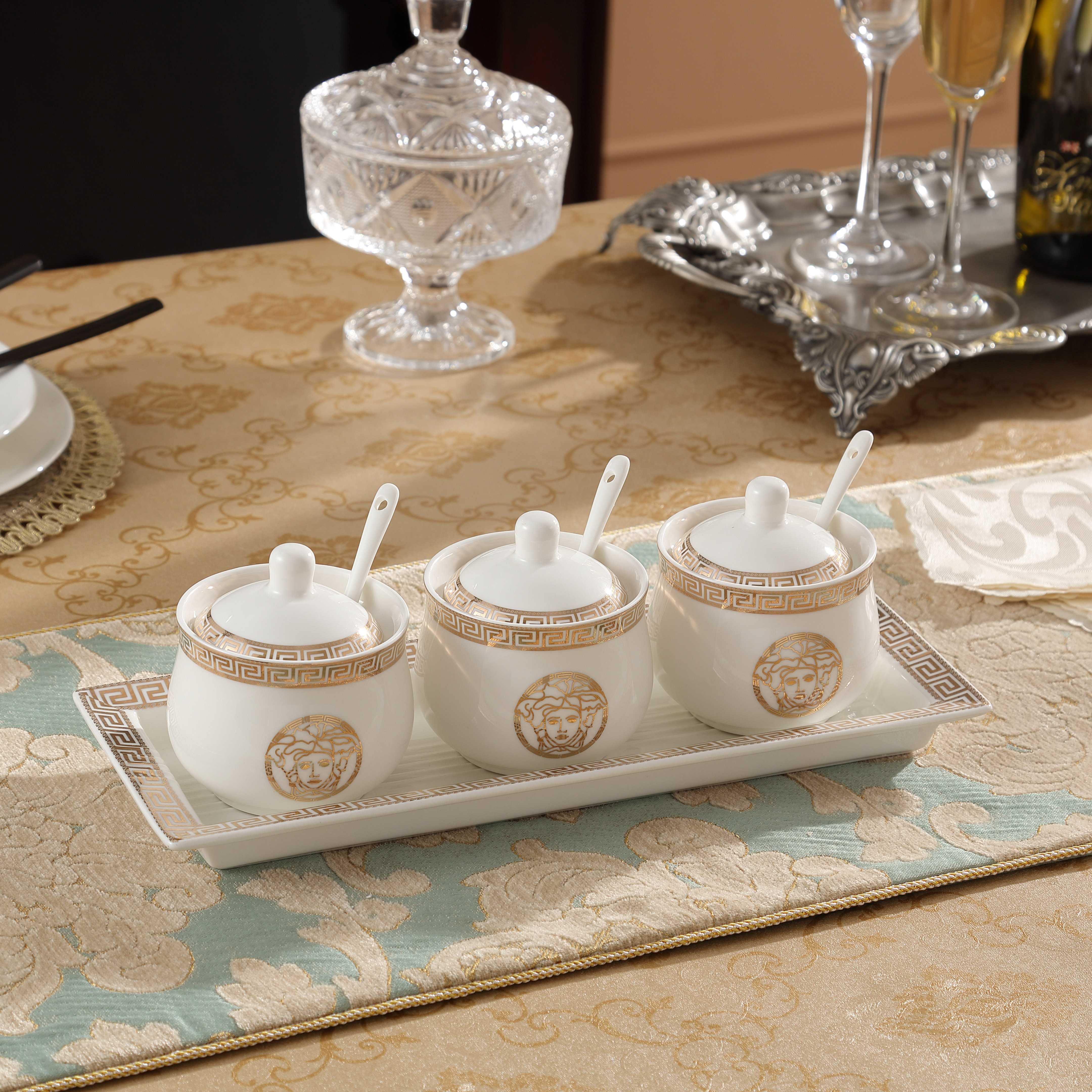 European-style seasoning pot three-piece set ceramic seasoning box seasoning bottle salt shaker seasoning box set kitchen utensils