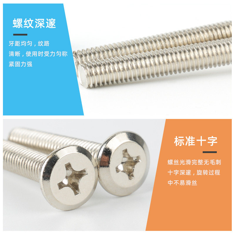 Nickel-plated inverted cross screw furniture crib accessories screw bedside integral cabinet inclined large flat head bolt M6 * 120