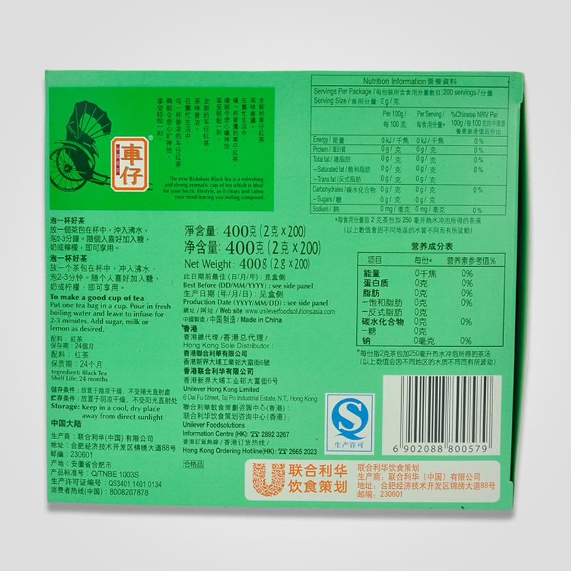 Lipton Lipton black tea bag Car Tsai black tea 400g bags of tea leaves Hong Kong-style office tea bags 2g*200 bags
