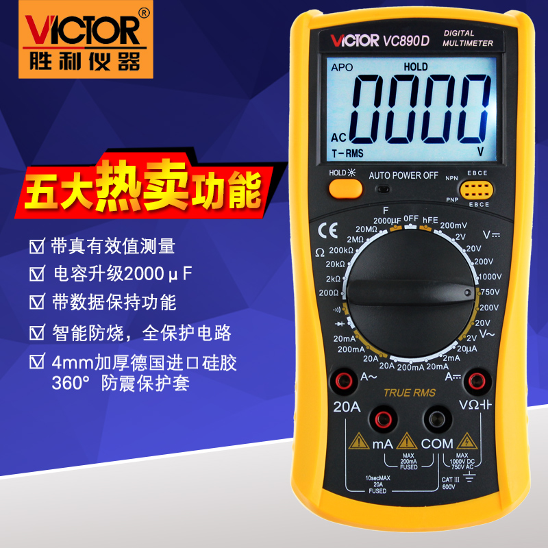 Victory digital multimeter VC890D digital display universal meter capacitive 2000uF high precision Wanuses electric meter full protection