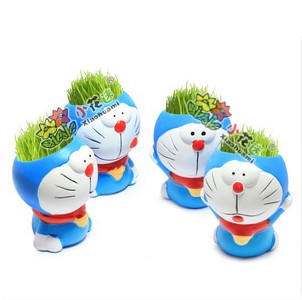 Doraemon grass head doll Office mini plant small potted kindergarten gift Green plant holiday gift