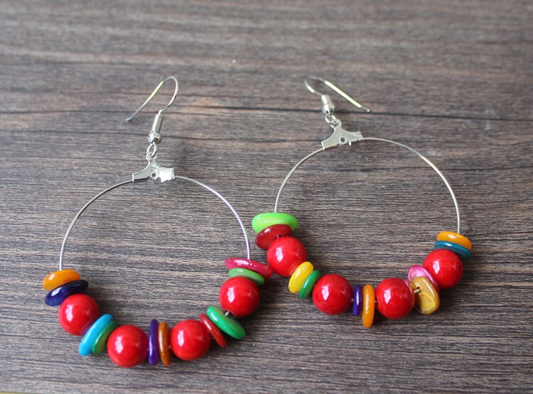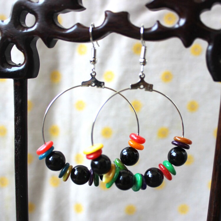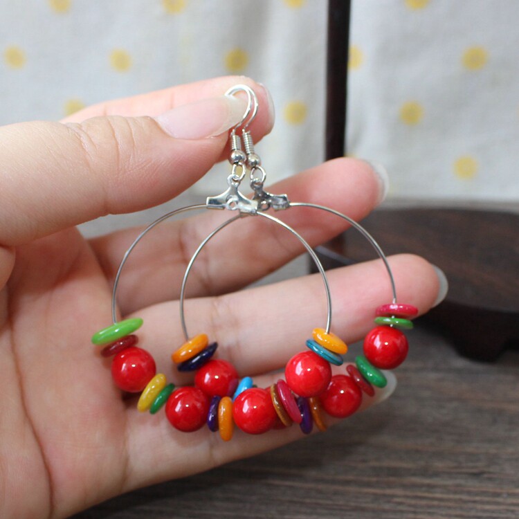 China Wind Retro Goods Factory Home Direct Marketing National Wind Color Stone Circle Ear Pin Bohemian Exaggeration Earrings R208