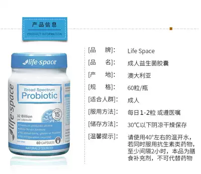 Australia imported Life Space probiotic capsules for adults to regulate the stomach and intestines, containing 60 prebiotics