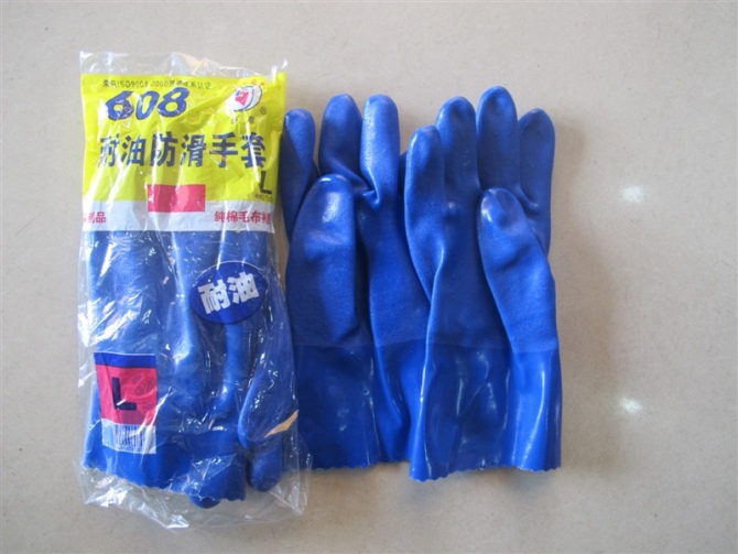Shuyi brand 608 oil-resistant non-slip gloves impregnated cotton wool cloth lining cold-proof industrial plastic blue labor insurance gloves