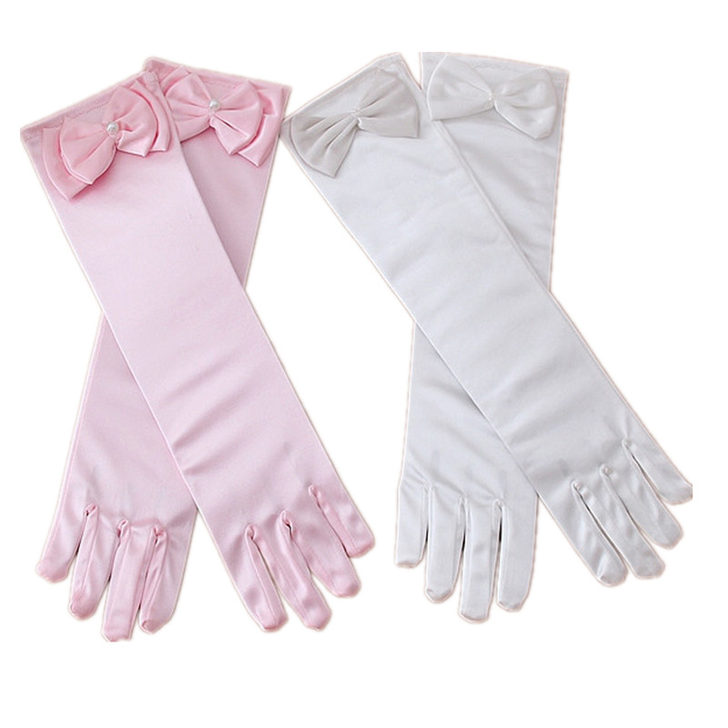 Young Child Dance White Gloves Children's Literature Performance Five Fingers Flower Dress Gloves Princess Dress Girl Long Edition
