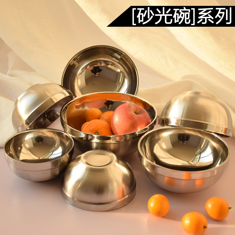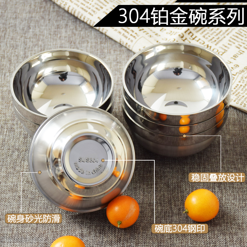 Stainless steel bowl 304 household double thick soup bowl bowl male children adult canteen noodle bowl Stainless steel insulation bowl