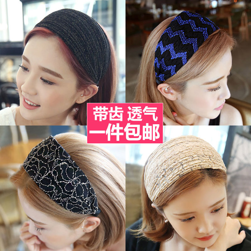 South Korea's toothed anti-slip hair stirrup Brief about 100 hitch ultra-wide hair clip Breathable Lace Hair with head stir-covered white hair ornaments