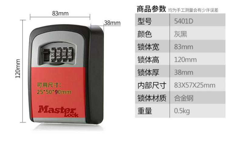U.S. Masterlock combination lock key box metal storage box door anti-theft storage box 5401D