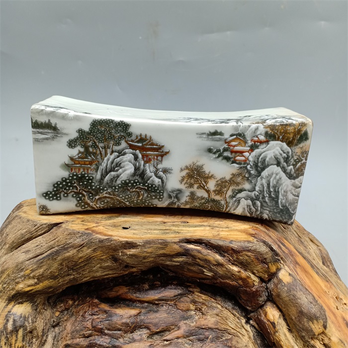 Large Qing Qianlong powder color Mountain Water ink pillow vein pillow hand pillows Antiquity ancient Imitation Ancient Porcelain Pendulum-Taobao
