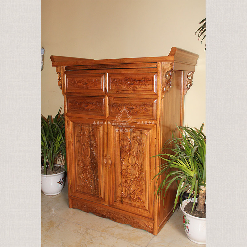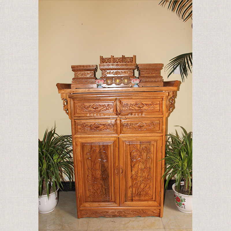 Buddha's niche for table pure handmade fragrant Zhangmu wood carved lotus Buddhist table cabinet Shentai for a table incense case for the Buddha table can be set