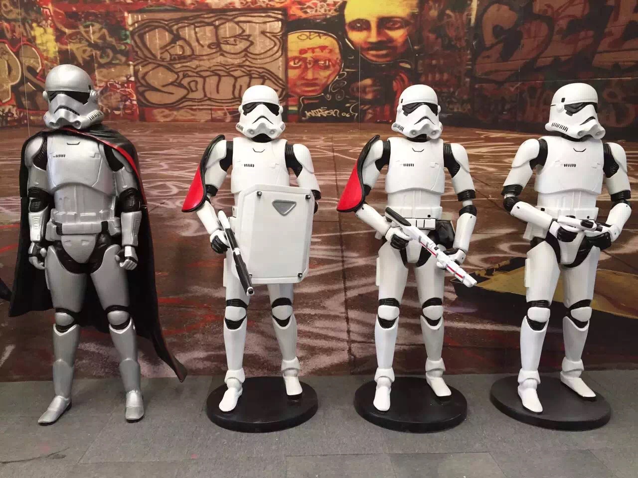 Large exhibition showcases the Star Wars White Soldiers Glass Fiber Model Movie Sculpture Pendulum for Outdoor Activities